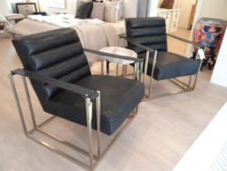 Item # 110 -- Pair of UNIVERSAL Black Leather Arm Chairs, Retail $1985.00 (ea)