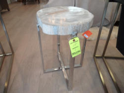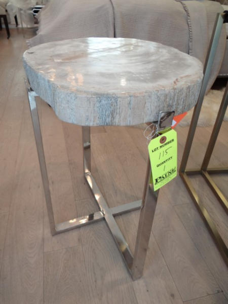 Item # 115 -- PALACEK petrified wood table on chrome legs, 22"x23"x20", Retail $1384.00