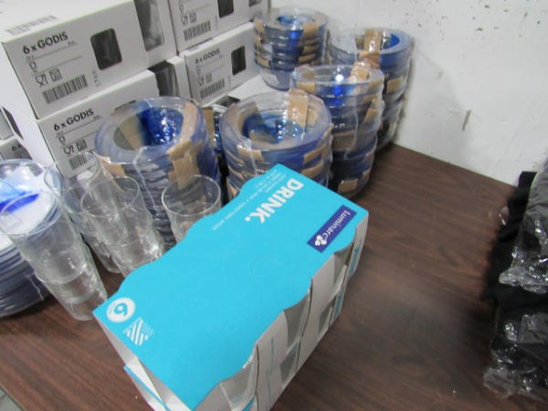 Lot 84 6X Godis Rock Glasses (8 Oz.), 60 Murano Dessert Bowls (5.4 Oz.) along with 24 Murano Soup Plates (11 Oz.)