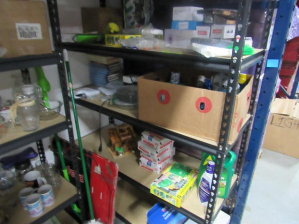 Lot Cont 2-Sec Shelv, Glass, Cleaning Etc.