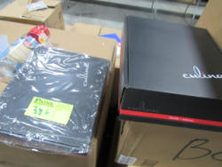 Footmate System FM Blue Foot Massages & Scrubbers, Pallet #35#366C - Lot 8-5 Gallon Vitrolero Plastic Containers, 8-Cullina 12 Quart Pasta Pots, 7-Cullina 6 Quart Pasta Pots, 2 Cases Strainers and 18 Platters