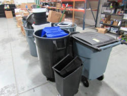 Lot 8-5 Gallon Vitrolero Plastic Containers, 8-Cullina 12 Quart Pasta Pots, 7-Cullina 6 Quart Pasta Pots, 2 Cases Strainers and 18 Platters#367 - Footmate System FM Blue Foot Massages & Scrubbers
