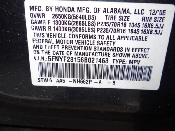 2006 Honda Pilot. VIN: 5FNYF28156B021463. Mileage: 188,601. Newton PD.