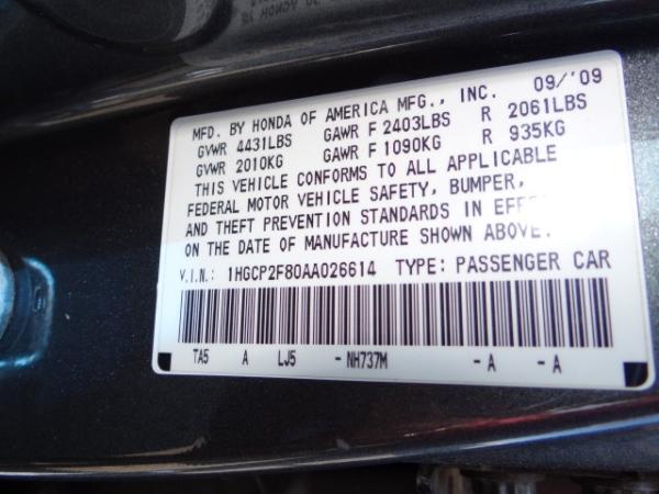 Item # 10 -- 2010 Honda Accord EX-L VIN: 1HGCP2F80AA026614. Mileage: 206,165. Framingham PD.