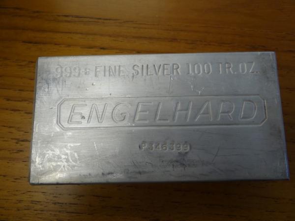 Item # 2 -- 100 ounce Engelhard .999+ fine silver bar