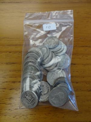 $10.00 face 90% silver coins: Washington 25c