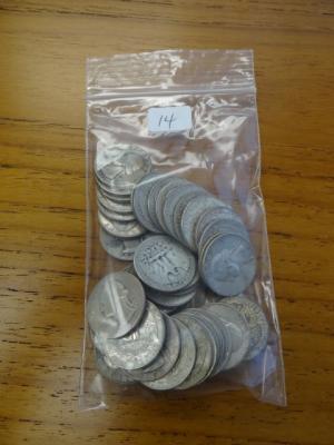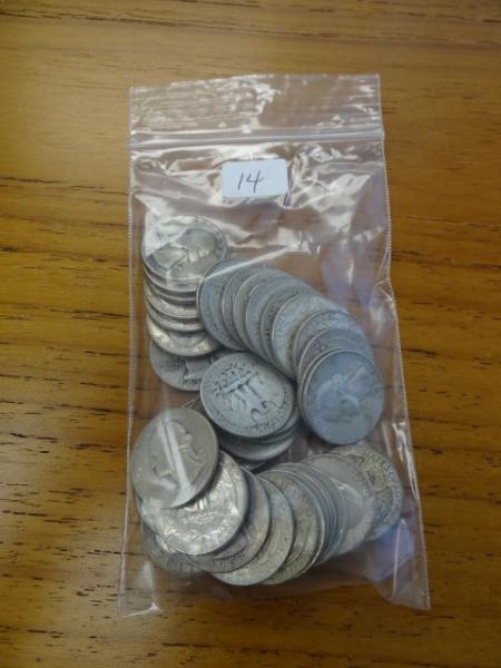 Item # 14 -- $10.00 face 90% silver coins: Washington 25c