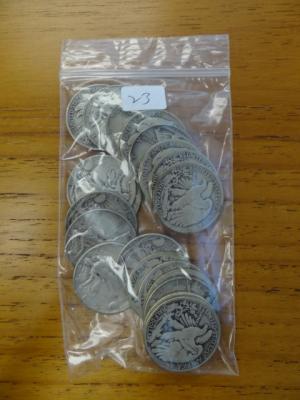 Item # 23 -- $10.00 face 90% silver coins: Walking Liberty 50c