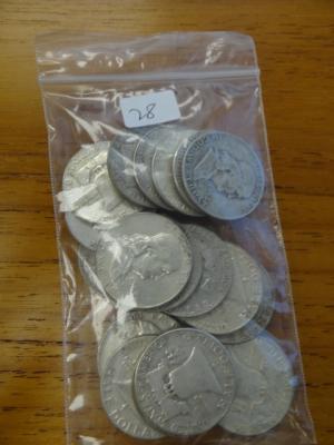 Item # 28 -- $10.00 face 90% silver coins: Franklin 50c
