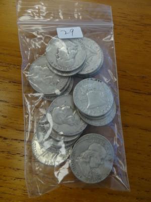 Item # 29 -- $10.00 face 90% silver coins: Franklin 50c