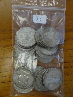 Item # 32 -- $10.00 face 90% silver coins: Franklin 50c