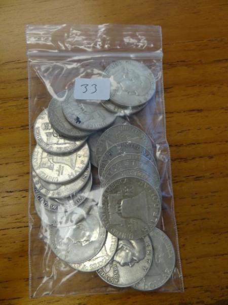 Item # 33 -- $10.00 face 90% silver coins: Franklin 50c