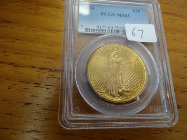 Item # 67 -- U.S. Gold: 1924 $20.00, PCGS MS-63