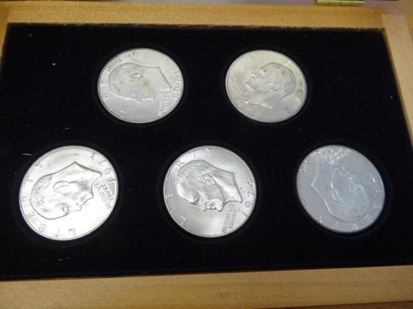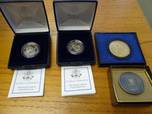 Item # 82 -- $1.00: (14) silver Ikes & (2) 1999 SBA. Also (3) medals