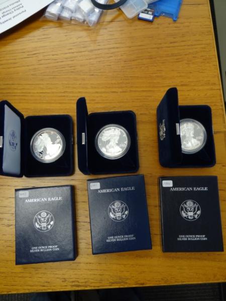 Item # 84 -- $1.00 Eagles: 1999, 2001 & 2003, Proof; 1999, Uncirculated