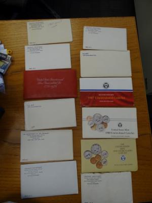 Item # 97 -- Mint Sets: 1965 SMS, 1968-1972, 1974, 1976 three piece, 1979, 1987, 1988 & 1990 (12 sets)
