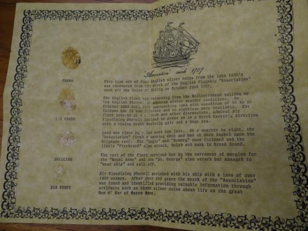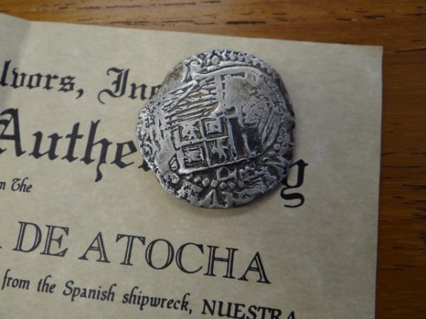 Shipwreck Coins with paperwork including an Atocha 8 Reales Cob