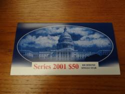 Item # 105 -- U.S. Small Size Notes: Silver Certificates: 1934 $1.00, EF & (16) later dates, (1) $5.00, Circulated Legal Tender: (3) $2.00, Circulated Federal Reserve Notes: 1969 $1.00, reverse ink smear, Circulated 1976 $2.00 First Day of Issue & 2001 Richmond $50.00 Star, low serial number 1209, Uncirculated in BEP folder