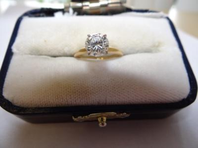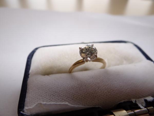 Item # 107 -- 14KT P Yellow Gold and Diamond Ring, Prong-Set with a Round Brilliant Diamond Weighing Approx. 1.25 cts., Approx Size 6.75,1.7 dwt. Receipt: I S I1