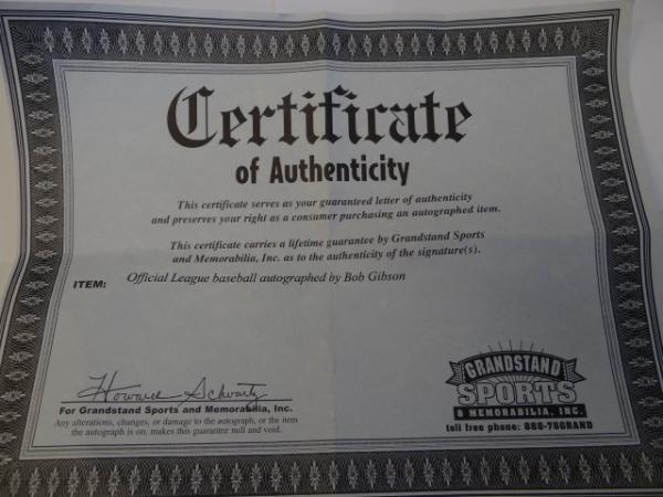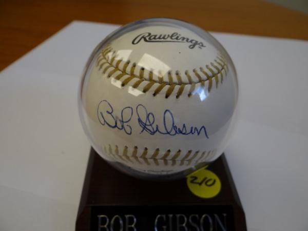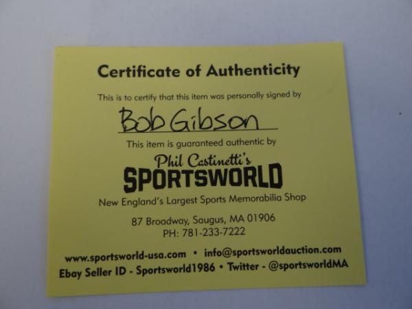 Item # 210 -- Bob Gibson Signed Autographed MLB Baseball. Certificate of Authenticity Phil Castinetti's Sportsworld and Grandstand Sports & Memorabilia