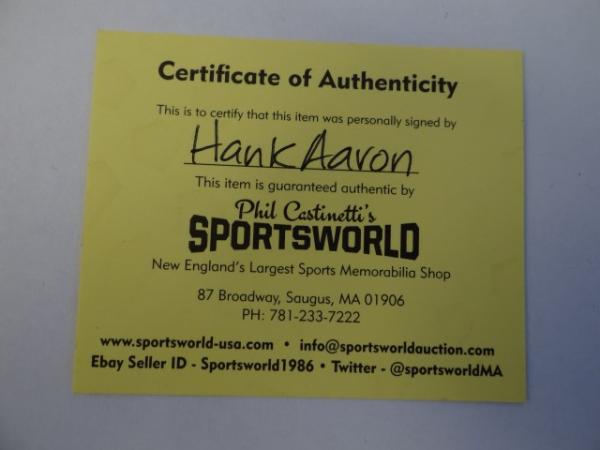 Item # 211 -- Hank Aaron Signed Autographed MLB Baseball. Certificate of Authenticity Phil Castinetti's Sportsworld