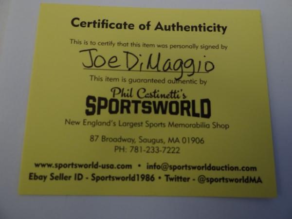 Joe DiMaggio Signed Autographed MLB Baseball. Certificate of Authenticity Phil Castinetti's Sportsworld