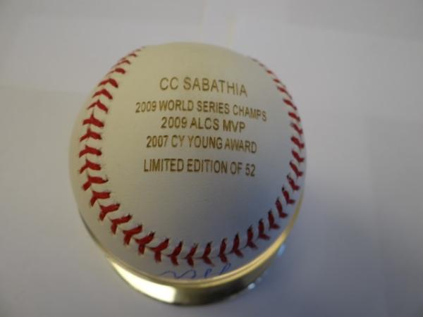 Item # 218 -- C.C Sabathia Signed Autographed MLB Baseball. Certificate of Authenticity Phil Castinetti's Sportsworld and Sports Memorabilia.com
