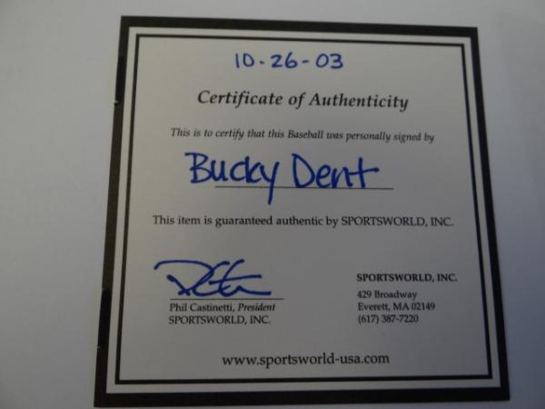 Item # 220 -- Bucky Dent Signed Autographed MLB Baseball. Certificate of Authenticity Phil Castinetti's Sportsworld