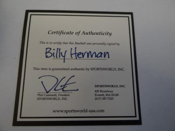 Billy Herman Signed Autographed MLB Baseball. Certificate of Authenticity Phil Castinetti's Sportsworld