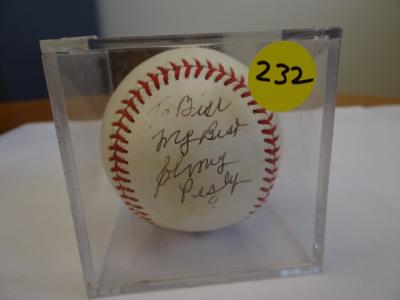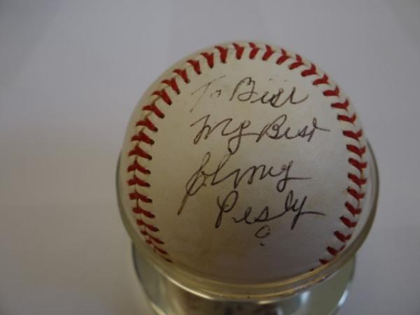 Item # 232 -- Johnny Pesky Signed Autographed MLB Baseball. Personalized: To Bill My Best Johnny Pesky. Certificate of Authenticity Phil Castinetti's Sportsworld