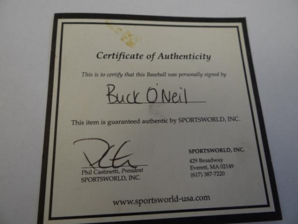 Item # 239 -- Buck O'neil Signed Autographed MLB Baseball. Certificate of Authenticity Phil Castinetti's Sportsworld