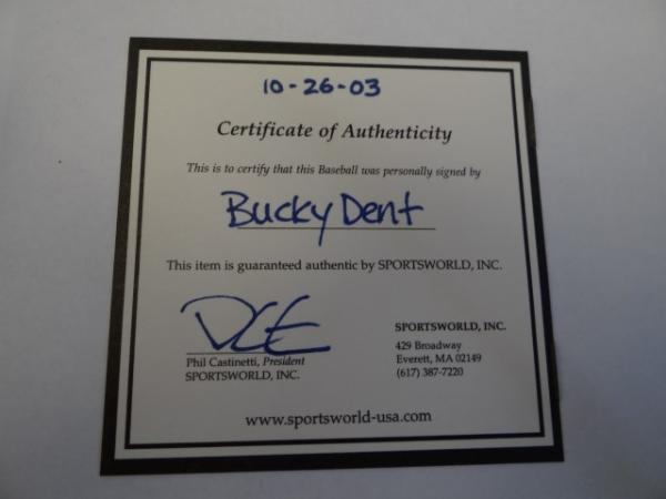 Item # 242 -- Bucky Dent Signed Autographed MLB Baseball. Certificate of Authenticity Phil Castinetti's Sportsworld
