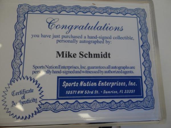 Item # 251 -- Mike Schmidt Signed Autographed MLB Baseball. Certificate of Authenticity Certificate of Authenticity Sports Nation Enterprises