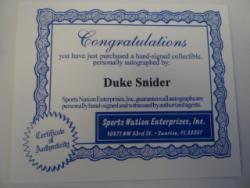 Item # 252 -- Duke Snider Signed Autographed MLB Baseball. Certificate of Authenticity Sports Nation Enterprises