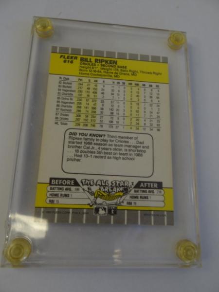 1989 Fleer 616 Billy Ripken Baseball Card. ff on Bat Knob