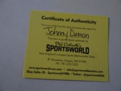 Item # 260 -- Johny Damon Signed Photo. Frame 13" x 15". Picture 7 1/2" x 9 1/4". Certificate of Authenticity Phil Castinetti's Sportsworld