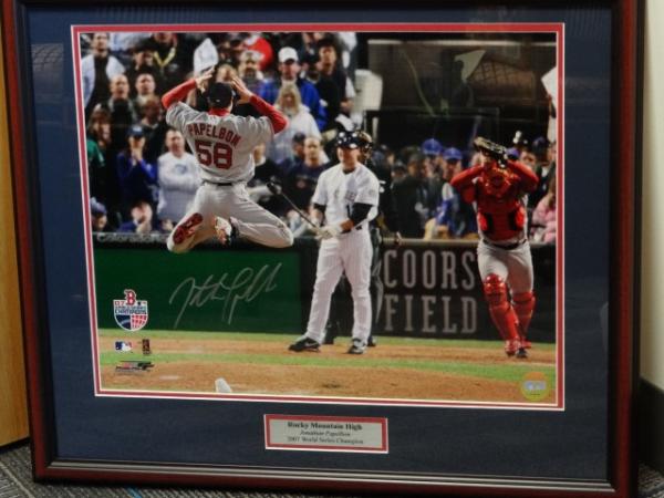Jonathan Papelbon Signed Photo. Frame 22" x 26". Picture 15 1/4" x 19 1/4". Certificate of Authenticity New England Picture Co.
