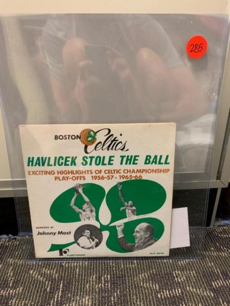 Red Auerbach Autograph on Havlicek Stole The Ball Vintage Record Album. Certificate of Authenticity Phil Castinetti's Sportsworld