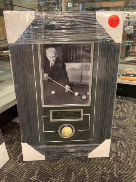 Item # 295 -- Willie Mosconi Signed Pool Ball Framed with 8" x 10" Photo. Certificate of Authenticity Phil Castinetti's Sportsworld