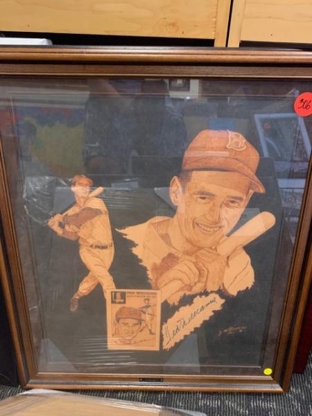 Ted Williams Signed Hand Made Leather Etching. One of a Kind. Certificate of Authenticity Phil Castinetti's Sportsworld.