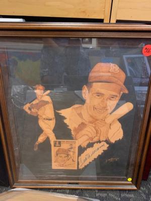 Item # 306 -- Ted Williams Signed Hand Made Leather Etching. One of a Kind. Certificate of Authenticity Phil Castinetti's Sportsworld.