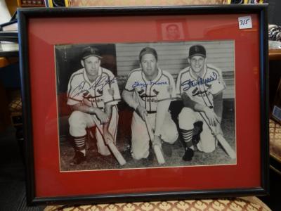 Item # 315 -- Framed Enos Slaughter, Terry Moore and Stan Musial Autographed Photo. 9 1/2" 13 3/4" Sight.Certificate of Authenticity Phil Castinetti's Sportsworld