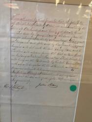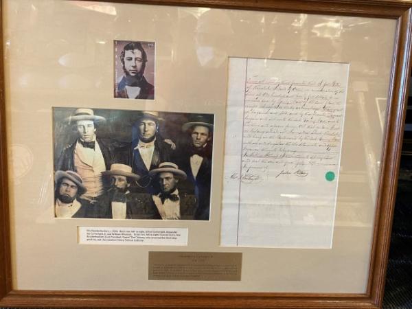 Item # 317 -- Framed Signed Document by Alexander J. Cartwright "The Father of Baseball" along with a Photo of The Knickerbockers c. 1846.