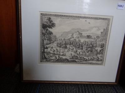 Item # 401 -- Framed Peter Van Der Borcht "Imagines ET Figurae Bibliorum" Etching. Netherlands, 1540-1608. 8" x 10 1/2" Sight.
