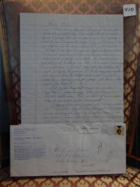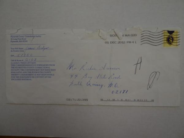 Item # 410 -- Handwritten Letter from James Joseph "Whitey" Bulger Jr. While Incarcerated at Plymouth Correctional Facility. December 2012.