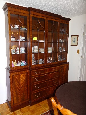 Item # 3 -- (1) Henkel Harris Mahogany Breakfront. 6' 1" X 15" X 7' 3" H. Lighted.