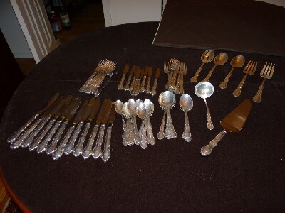 Item # 7 -- (1) 64 Pieces Gorham "Andante" Pattern Sterling Silver Flat Ware Service. 12 Knives - 9", 11 Forks - 7 1/8", 13 - Cream Soups - 6 3/8", 16 Teaspoons - 6", 8 Salad Forks - 6 1/2". 8 Butter Knives - 6 1/4". Along with 7 serving pieces, Approx. 66.2 Troy Oz. Weighable Silver.