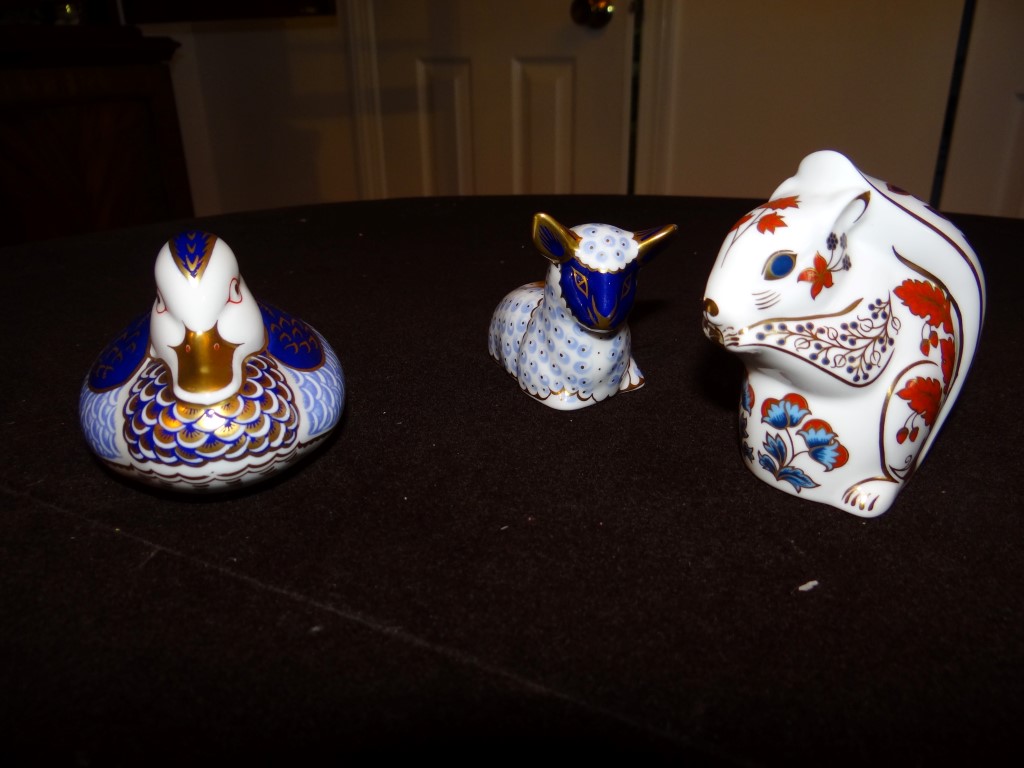 Item # 25 -- (1) Lot of 3 Royal Crown Derby Figurines, Squirrel 3 3/4" Lamb 2 3/4" , Duck 2 3/4"