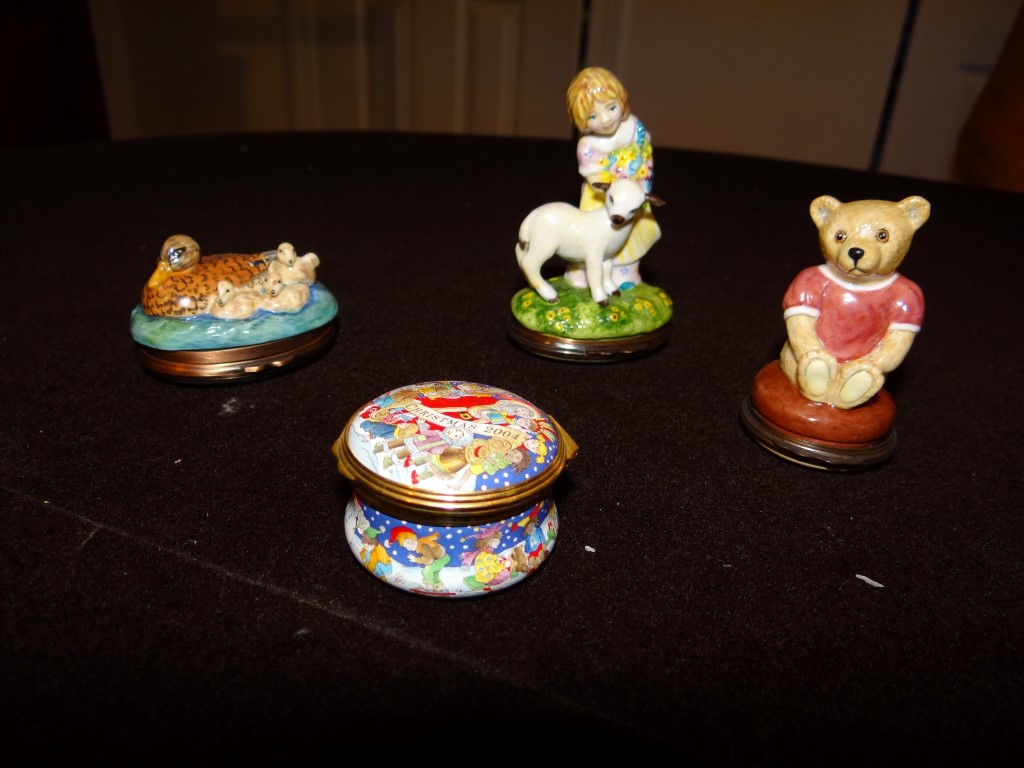 Item # 28 -- (1) Lot of 4 Halcyon Days Enamels. Mary Had A Little Lamb 3 1/2" Tallest.