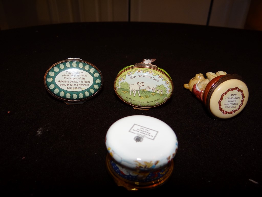 (1) Lot of 4 Halcyon Days Enamels. Mary Had A Little Lamb 3 1/2" Tallest.